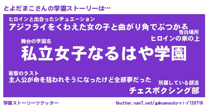 | 女子向けラノベタイトル風あだ名 | 『とよだまこ姫と円卓の騎士』 |