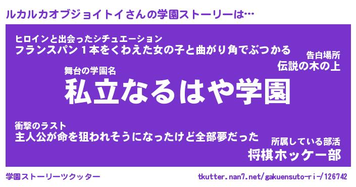 | 女子向けラノベタイトル風あだ名 | 『(仮)ルカルカオブジョイトイのやんごとなき事情』 |
