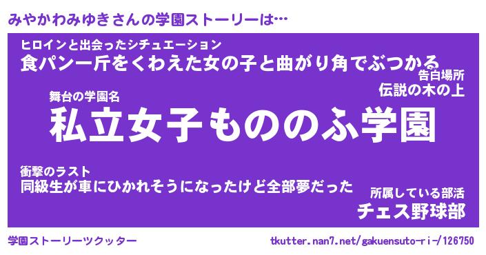 | ファンタジー風あだ名 | 『ミヤフェル』『ファントムミヤス』 |