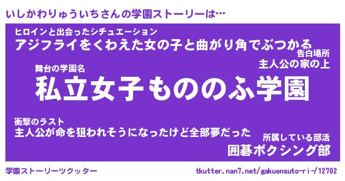 | 女子向けラノベタイトル風あだ名 | 『いしかわりゅういち姫と円卓の騎士』 |