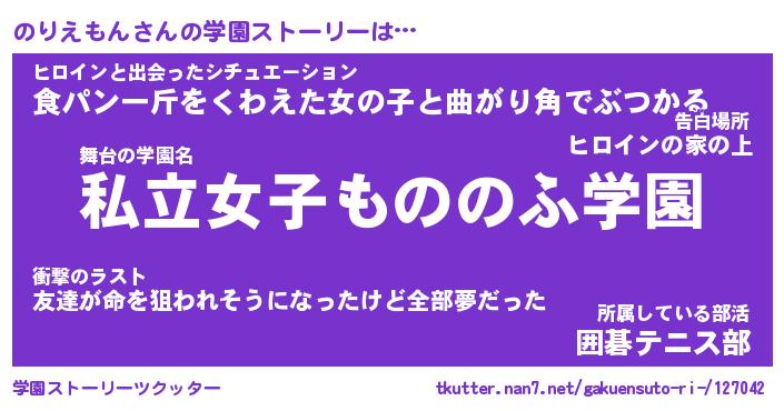 | 男性向けラノベタイトル風あだ名 | 『ノリエモンアートオンライン』 |