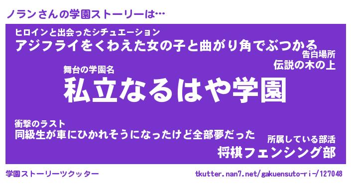 | 男性向けラノベタイトル風あだ名 | 『ノランの憂鬱』 |