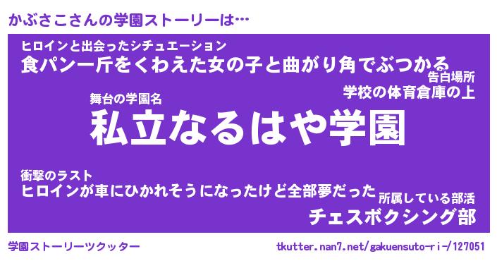 | 胡散臭い通販商品みたいなあだ名 | 『モテモテ間違いなし水晶球…その名も「かぶさこ」』 |