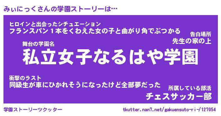 | 告白場所 先生の家の上 …「ふぃぎゅこ」 | 2月17日 06:24 |