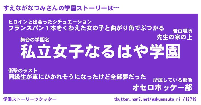| 伝説のあだ名 | 『封印されしスナイパーすえながなつみ』 |