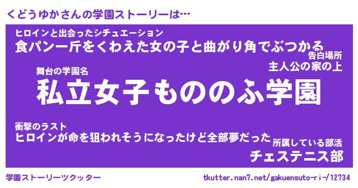 | 女子向けラノベタイトル風あだ名 | 『くどうゆか姫と円卓の騎士』 |