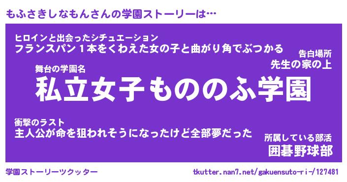 | 胡散臭い通販商品みたいなあだ名 | 『モテモテ間違いなしブレスレット…その名も「もふさきしなもん」』 |