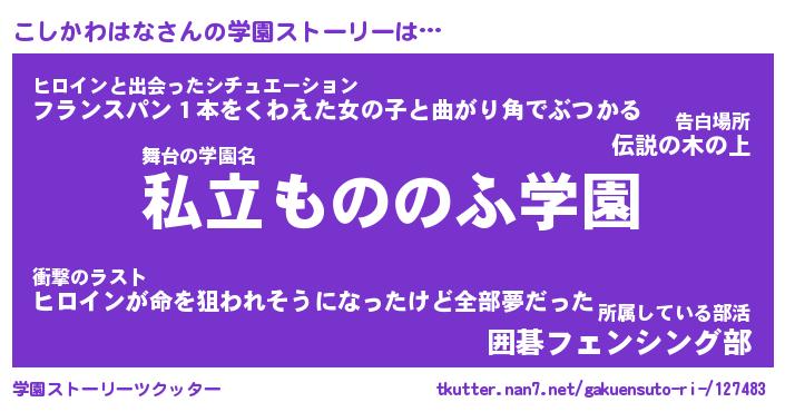 | 告白場所 先生の家の上 …「ふぃぎゅこ」 | 2月17日 06:24 |