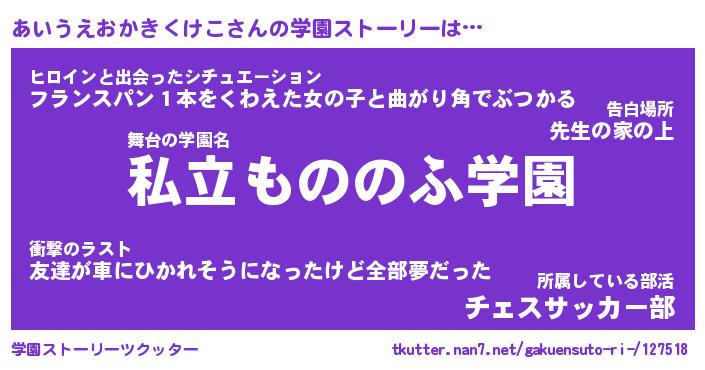 | 男性向けラノベタイトル風あだ名 | 『あいうえおかきくけこの憂鬱』 |