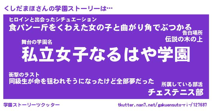 | 伝説のあだ名 | 『封印されしスナイパーくしだまほ』 |