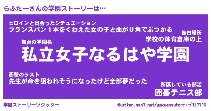 | 告白場所 先生の家の上 …「ふぃぎゅこ」 | 2月17日 06:24 |