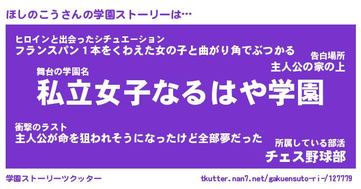 | ファンタジー風あだ名 | 『ホシフェル』『エターナルホシノコウー』 |