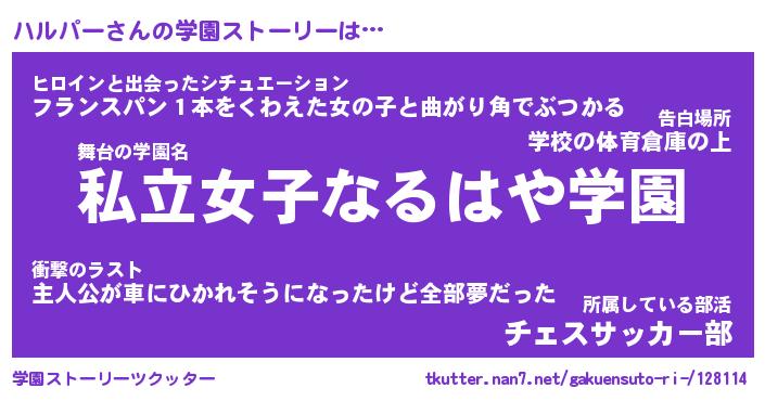 | 男性向けラノベタイトル風あだ名 | 『ハルパーアートオンライン』 |