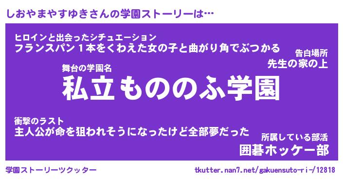 | 男性向けラノベタイトル風あだ名 | 『しおやまやすゆきの憂鬱』 |