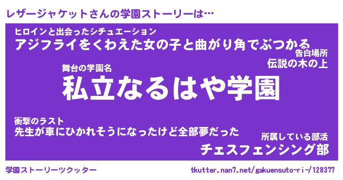 | 女子向けラノベタイトル風あだ名 | 『(仮)レザージャケットのやんごとなき事情』 |