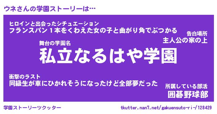 | 告白場所 先生の家の上 …「ふぃぎゅこ」 | 2月17日 06:24 |