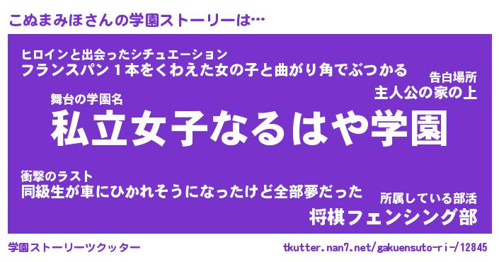 | 伝説のあだ名 | 『封印されしスナイパーこぬまみほ』 |