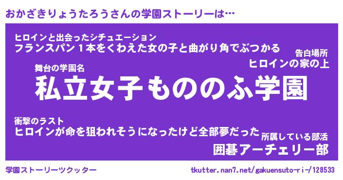 | 男性向けラノベタイトル風あだ名 | 『オカザキリョウタロウアートオンライン』 |