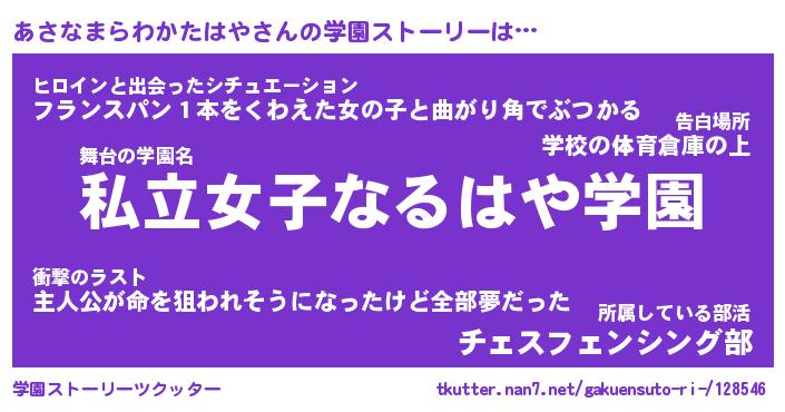 | ポケモン風あだ名 | 『アサチュウ』『アサナダネ』 |