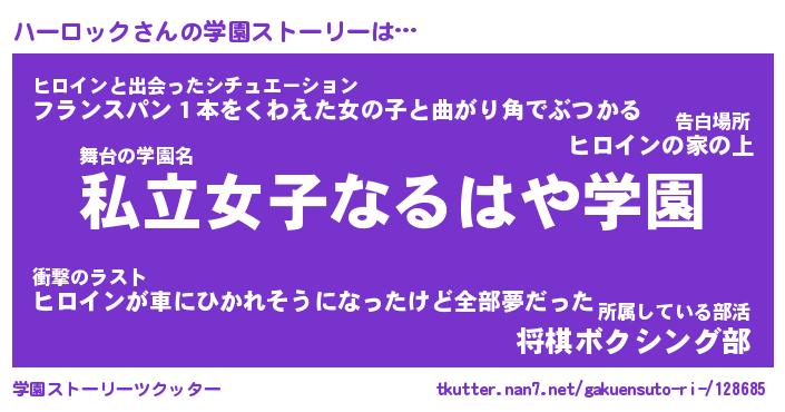| ファンタジー風あだ名 | 『ハーフェル』『エターナルハーロックー』 |