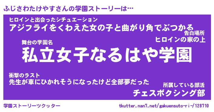 | 肩書あだ名 | 『ふじさわたけやす御曹司』 |