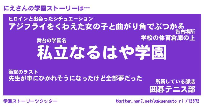 | 告白場所 先生の家の上 …「ふぃぎゅこ」 | 2月17日 06:24 |