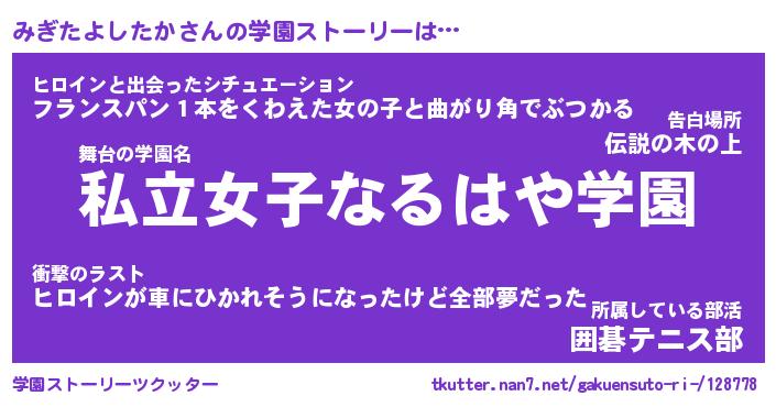 | ヘコむあだ名 | 『みぎにゅー』『なまこ酢』『みぎを』 |