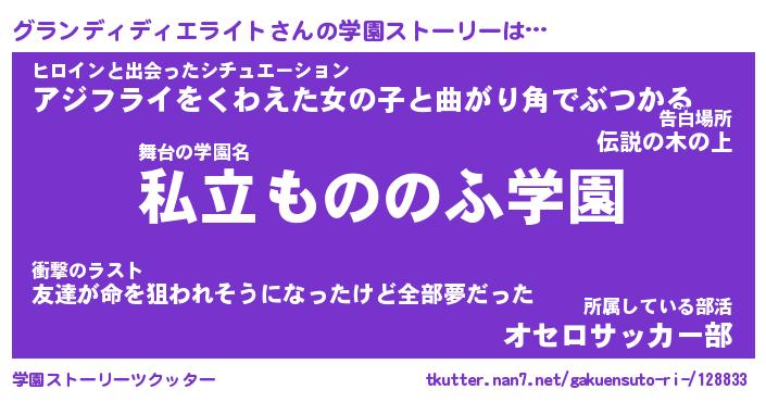| 女子向けラノベタイトル風あだ名 | 『(仮)グランディディエライトのやんごとなき事情』 |