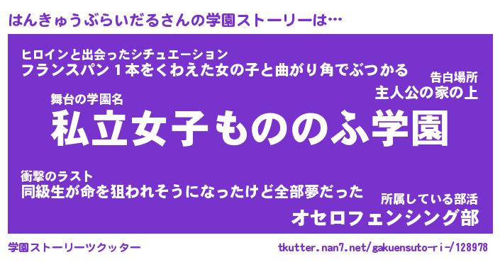 | ヘコむあだ名 | 『はんにー』『豆乳』『はんっぺ』 |