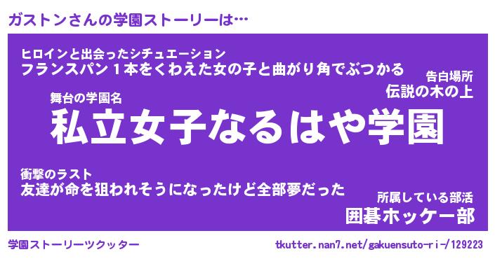 | 男性向けラノベタイトル風あだ名 | 『ガストンアートオンライン』 |