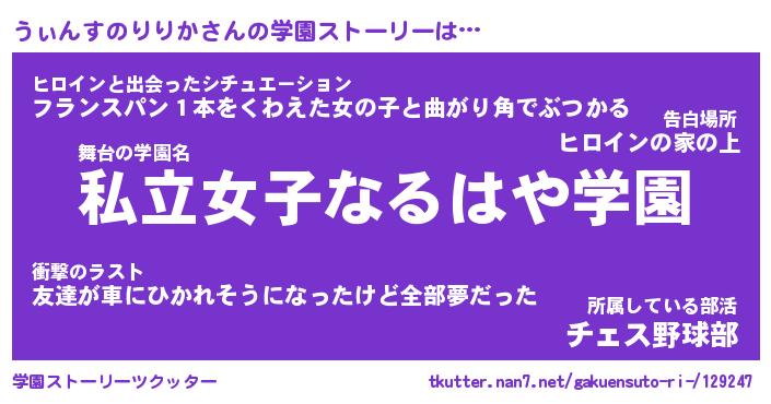 | 伝説のあだ名 | 『封印されしスナイパーうぃんすのりりか』 |