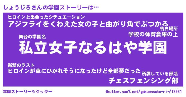 | 伝説のあだ名 | 『封印されしスナイパーしょうじろ』 |