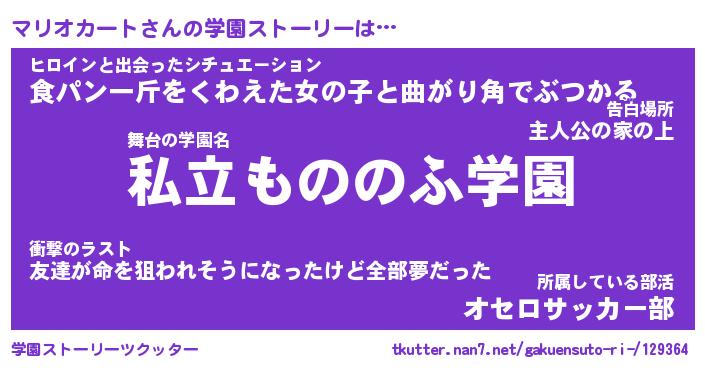 | 男性向けラノベタイトル風あだ名 | 『マリオカートの憂鬱』 |