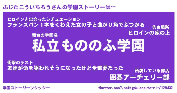 | 女子向けラノベタイトル風あだ名 | 『(仮)ふじたこういちろうのやんごとなき事情』 |