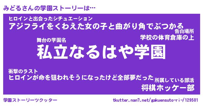| 伝説のあだ名 | 『伝説のスナイパーみどる』 |