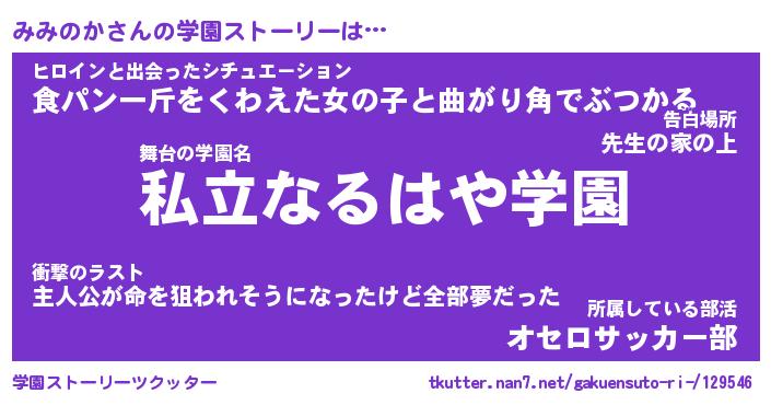 | 女子向けラノベタイトル風あだ名 | 『(仮)みみのかのやんごとなき事情』 |
