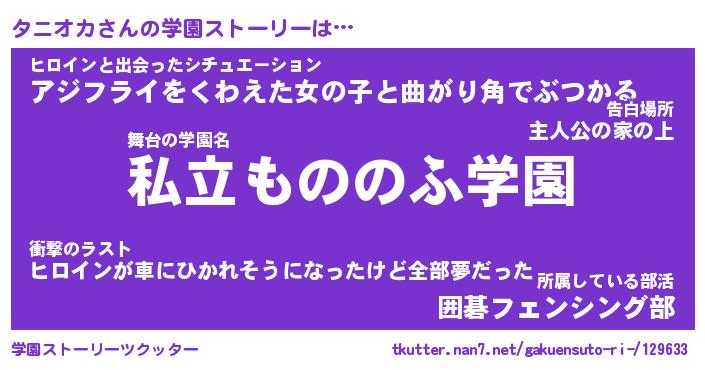 | 男性向けラノベタイトル風あだ名 | 『タニオカの憂鬱』 |