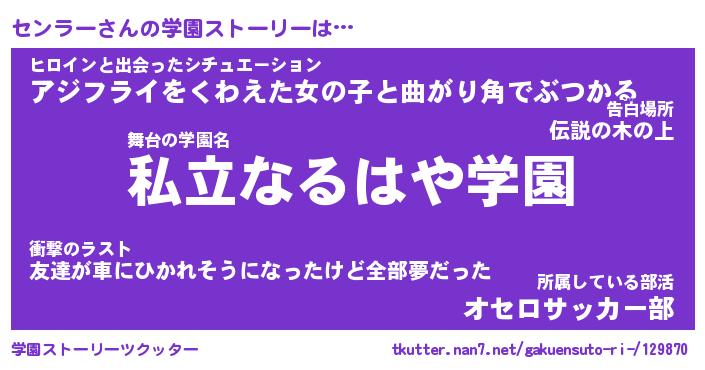 | 告白場所 先生の家の上 …「ふぃぎゅこ」 | 2月17日 06:24 |