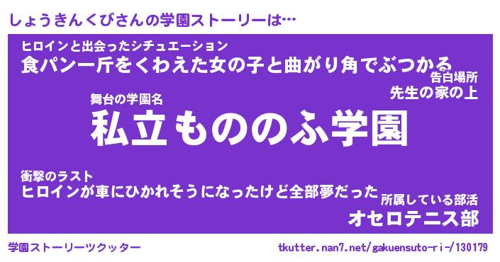 | 告白場所 先生の家の上 …「ふぃぎゅこ」 | 2月17日 06:24 |