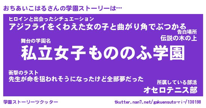| 男性向けラノベタイトル風あだ名 | 『オチアイコハルアートオンライン』 |