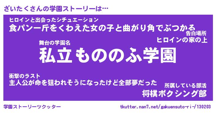 | 告白場所 先生の家の上 …「ふぃぎゅこ」 | 2月17日 06:24 |