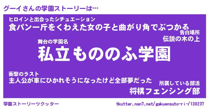 | 女子向けラノベタイトル風あだ名 | 『(仮)グーイのやんごとなき事情』 |