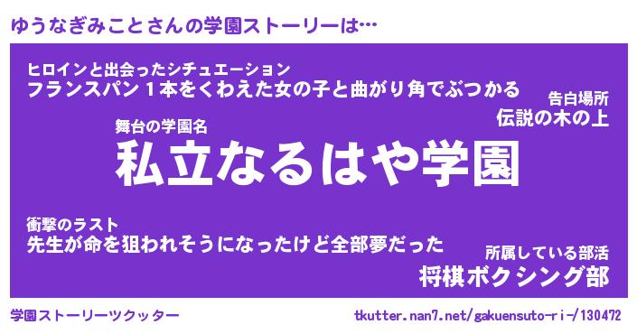 | 女子向けラノベタイトル風あだ名 | 『(仮)ゆうなぎみことのやんごとなき事情』 |