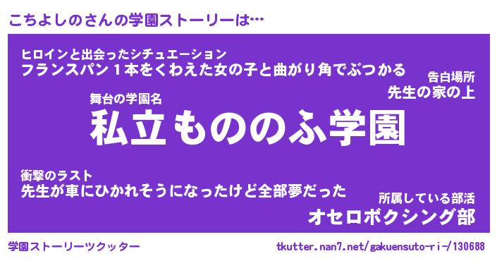 | 告白場所 先生の家の上 …「ふぃぎゅこ」 | 2月17日 06:24 |