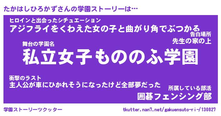 | 女子向けラノベタイトル風あだ名 | 『誰かこのたかはしひろかずを説明してください! ~契約から始まるウェディング~』 |