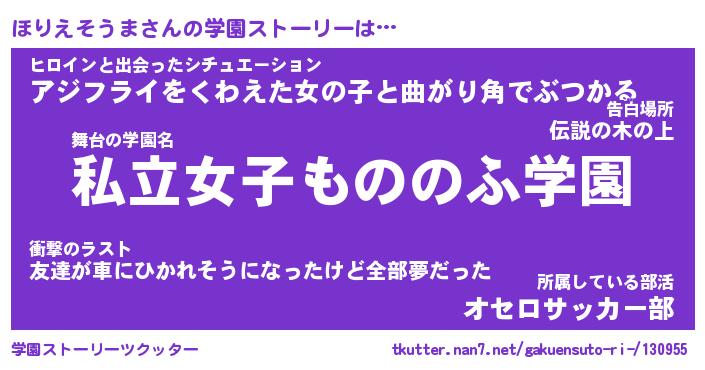 | 女子向けラノベタイトル風あだ名 | 『ほりえそうま姫と円卓の騎士』 |