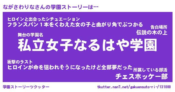 | 伝説のあだ名 | 『封印されしスナイパーながさわりな』 |