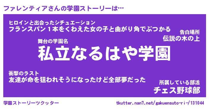 | 女子向けラノベタイトル風あだ名 | 『ファレンティア姫と円卓の騎士』 |