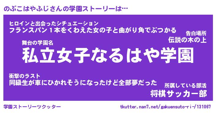 | 男性向けラノベタイトル風あだ名 | 『ノブコハヤフジアートオンライン』 |