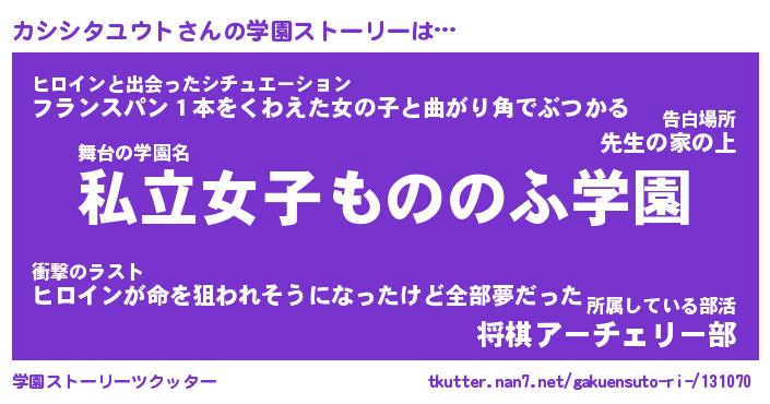 | 男性向けラノベタイトル風あだ名 | 『カシシタユウトアートオンライン』 |